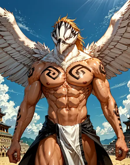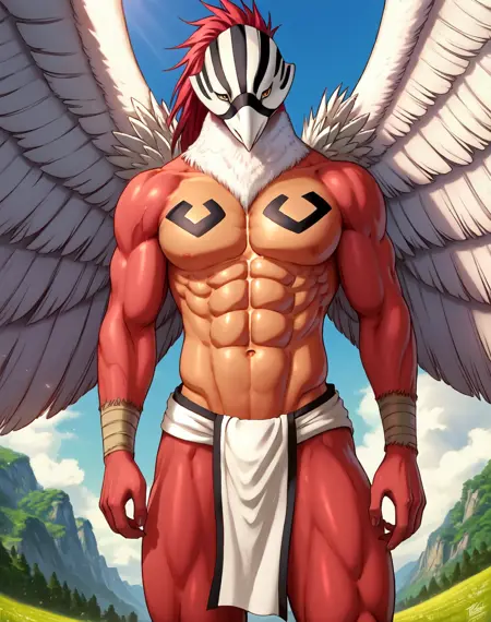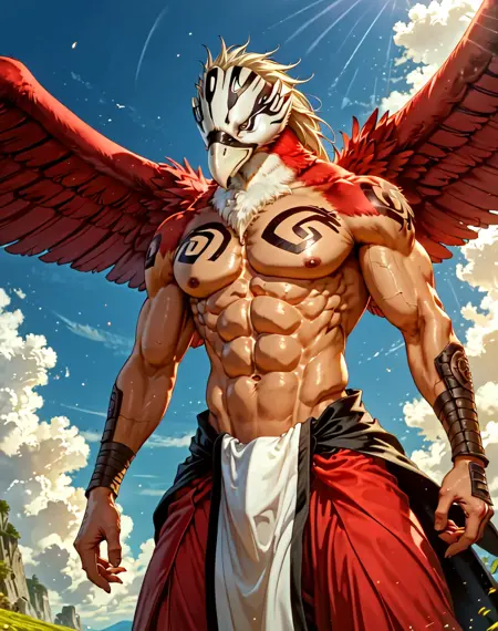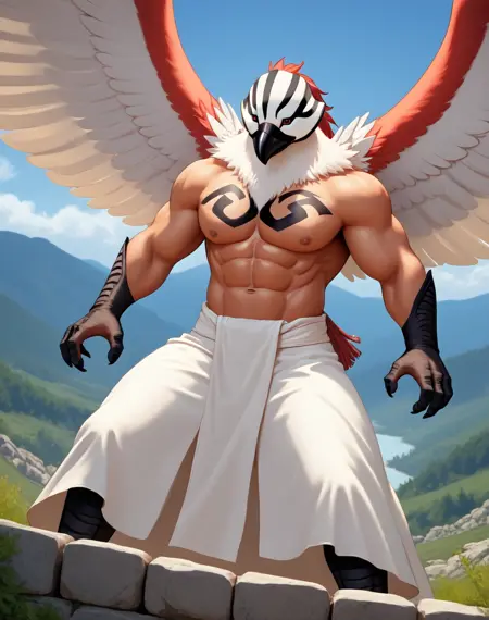 此LoRA的提示词为(Avrama Redder, Bleach_anime, 鹰, 肌肉发达)。添加额外的提示词如(红色身体, 棕色胸部和腹部, 白色头部, 白色喙, 白色腰布)有助于在某些检查点中更准确地呈现图像。
