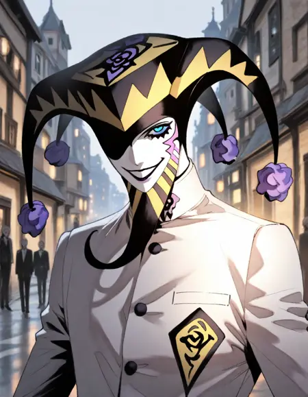 このLoRAは、PS1の『ペルソナ2』に登場するジョーカーさまをインスピレーション源としています。