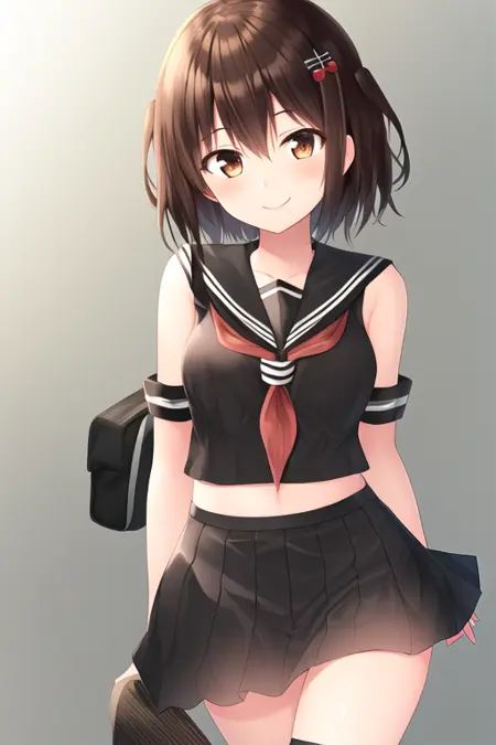 The trigger word is sendai_kantaicollection, and the recommended tags are best quality, masterpiece, highres, solo, {sendai_kantaicollection:1.15}, two_side_up, brown_eyes, short_hair, brown_hair, hair_ornament, bangs, smile, serafuku, blush, black_hair, hair_between_eyes.