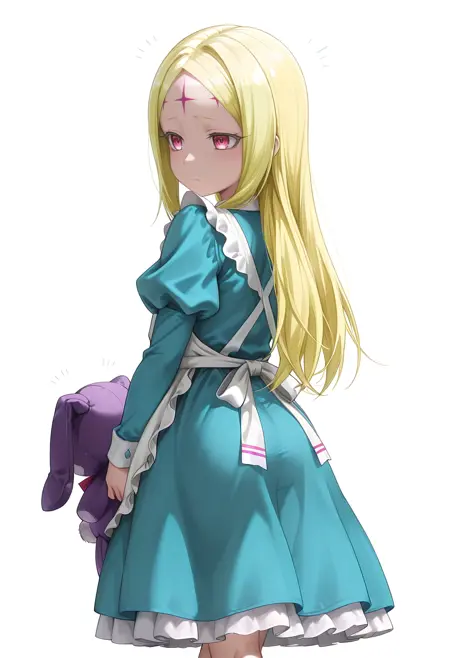 [c]morino_korisu, blonde hair, 1girl, long hair, pink eyes, petite, aged down,