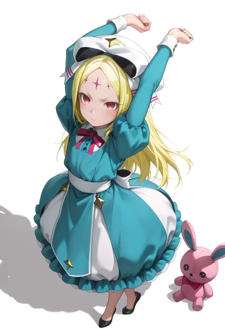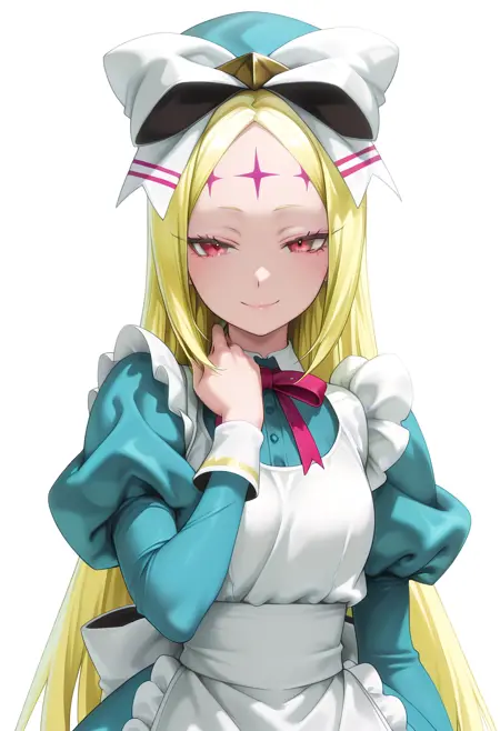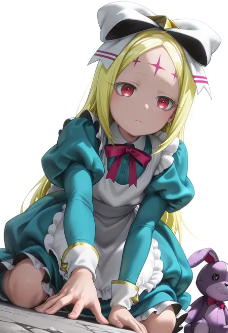 [n]ero_alice, dress, puffy sleeves, ribbon, apron, forehead mark,