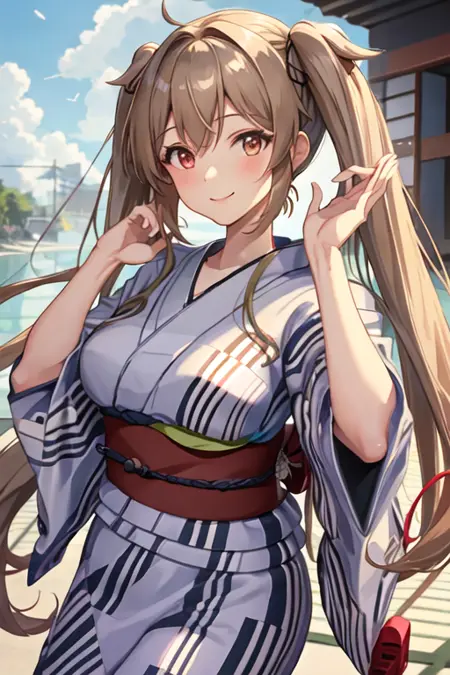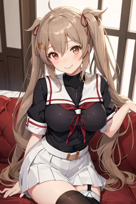 トリガー語はmurasame_kantaicollectionで、推奨タグはbest quality, masterpiece, highres, solo, {murasame_kantaicollection:1.15}, long_hair, light_brown_hair, brown_eyes, red_eyes, ribbon, smile, serafuku, hair_ribbon, black_serafuku, breasts, twintails, two_side_up, hair_flaps, hair_ornamentです。