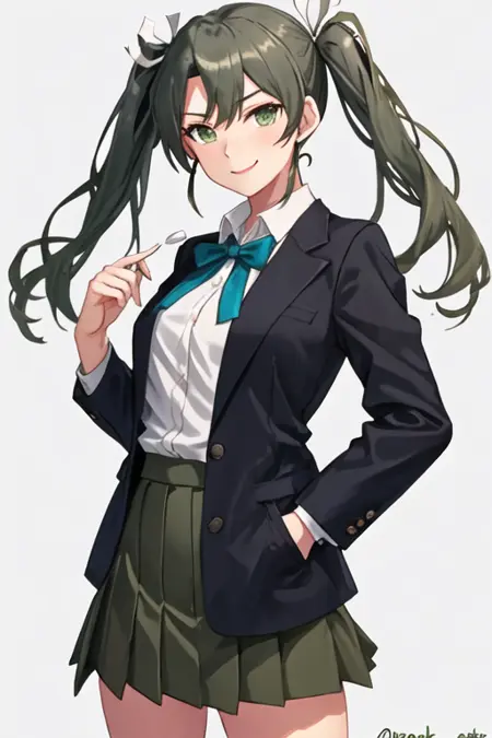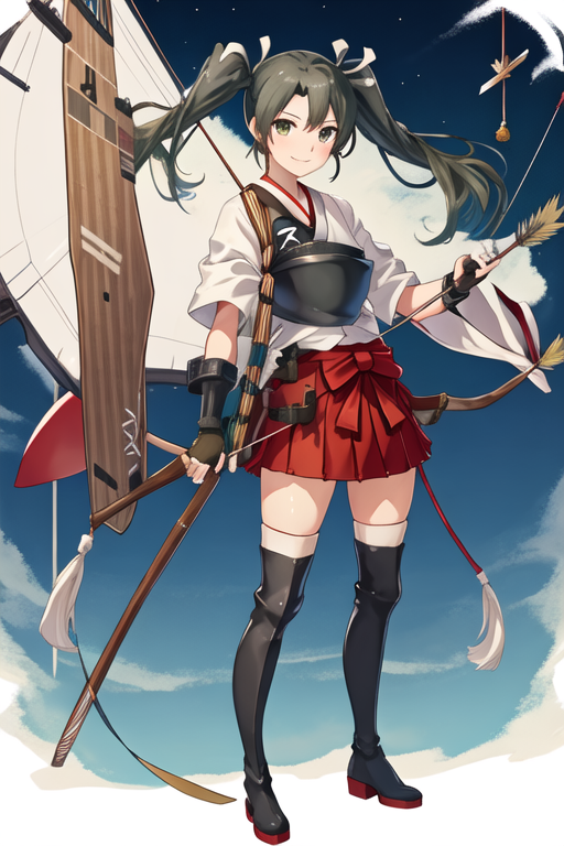 트리거 단어는 zuikaku_kantaicollection이며, 권장 태그는 best quality, masterpiece, highres, solo, {zuikaku_kantaicollection:1.15}, long_hair, twintails, ribbon, hair_ribbon, green_hair, green_eyes, smile, white_ribbon입니다.