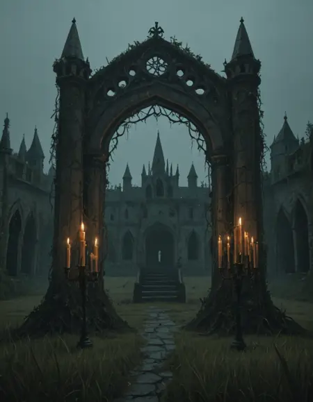 MUR0,极暗,绝对黑暗,中世纪,蜡烛,高天花板,月光,月影,金色,银色,房间,玫瑰窗彩绘玻璃,拱门,中世纪家具,蓝色,中世纪精细建筑,精细墙雕,精细拱门雕刻