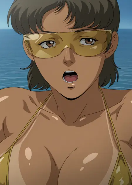 実験的: アニメ風カラーリング、目を閉じた、口を開けた、軽い笑み