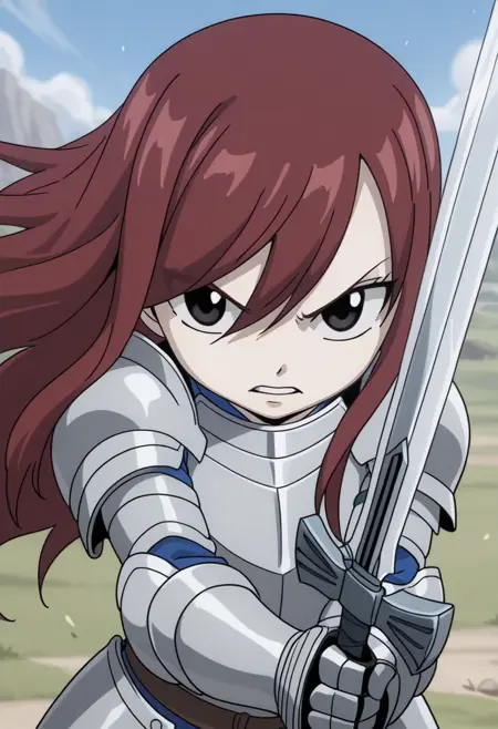 通常のエルザの鎧のLoraと組み合わせるのもなかなか面白いです。promptにデフォルトの鎧を指定すれば、Illustriousもそれを自動的に認識します。