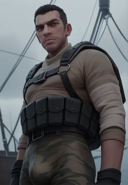 此LoRA精准捕捉了尼科粗糙的面容、短发以及标志性的冷峻而疲惫的神情,将他的《GTA IV》时代真实感融入高质量渲染中。尽管以高精度还原为目标,但其具备足够的灵活性,可用于其他目的——无论是为尼科设计不同服装、探索多样艺术风格,还是将他融入各种叙事场景中。
