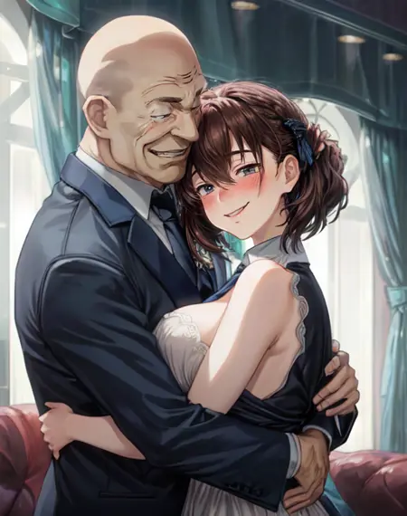 A CivitAI request! This one was hard as I only had one episode of an anime to work off of, but it turned out alright I suppose? You can also just lower it down a bit and generate a generic perverted chairman? Not really familiar with the series but according to the Ghost in the Shell wiki, the Chairman has a fetish for companion androids.