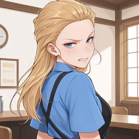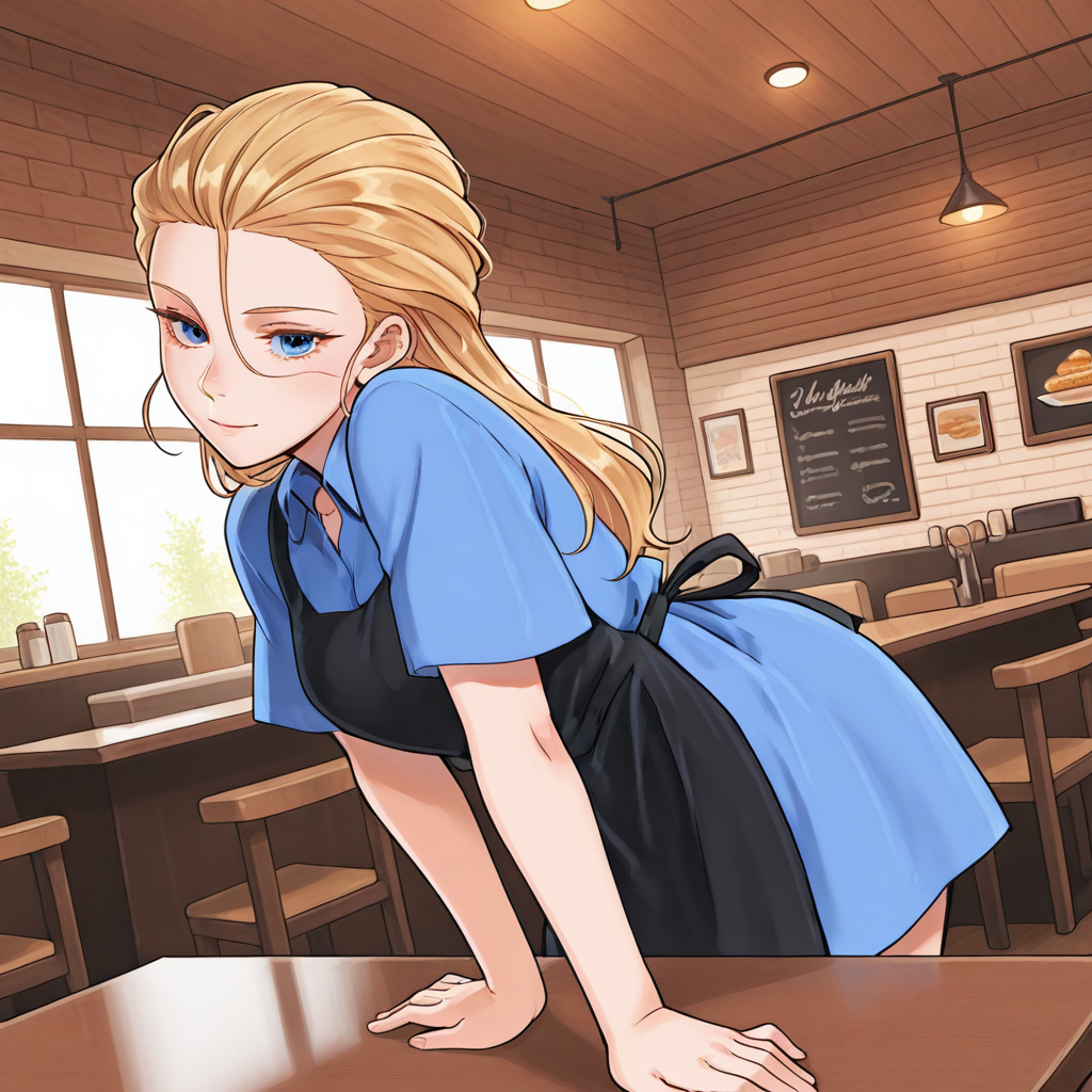 wh-女服务员, 1个女孩, 金发, 蓝眼睛, 单人,