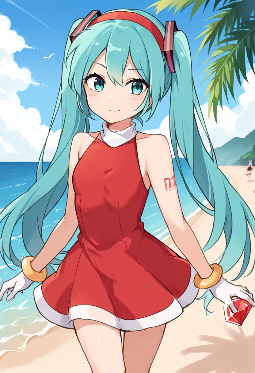 标签: AR_fu_ku,红色发带,发带,高领连衣裙,无袖连衣裙,露背连衣裙,吊带连衣裙,红色连衣裙,短款连衣裙,圆裙,手镯,手套,白色手套,过膝靴,红色鞋履,