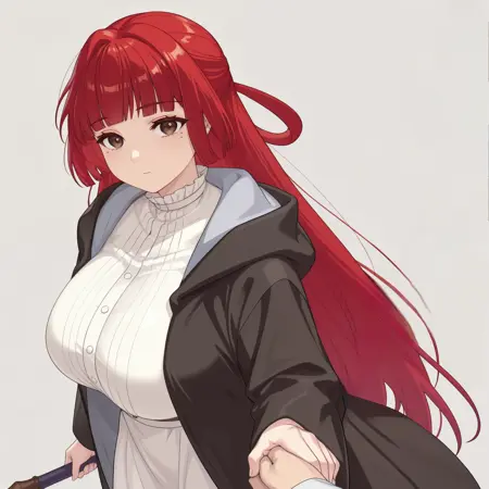 트리거 단어: 호소카와 하루카, 갈색 눈, 눈 아래 점, 빨간 머리, 긴 머리,