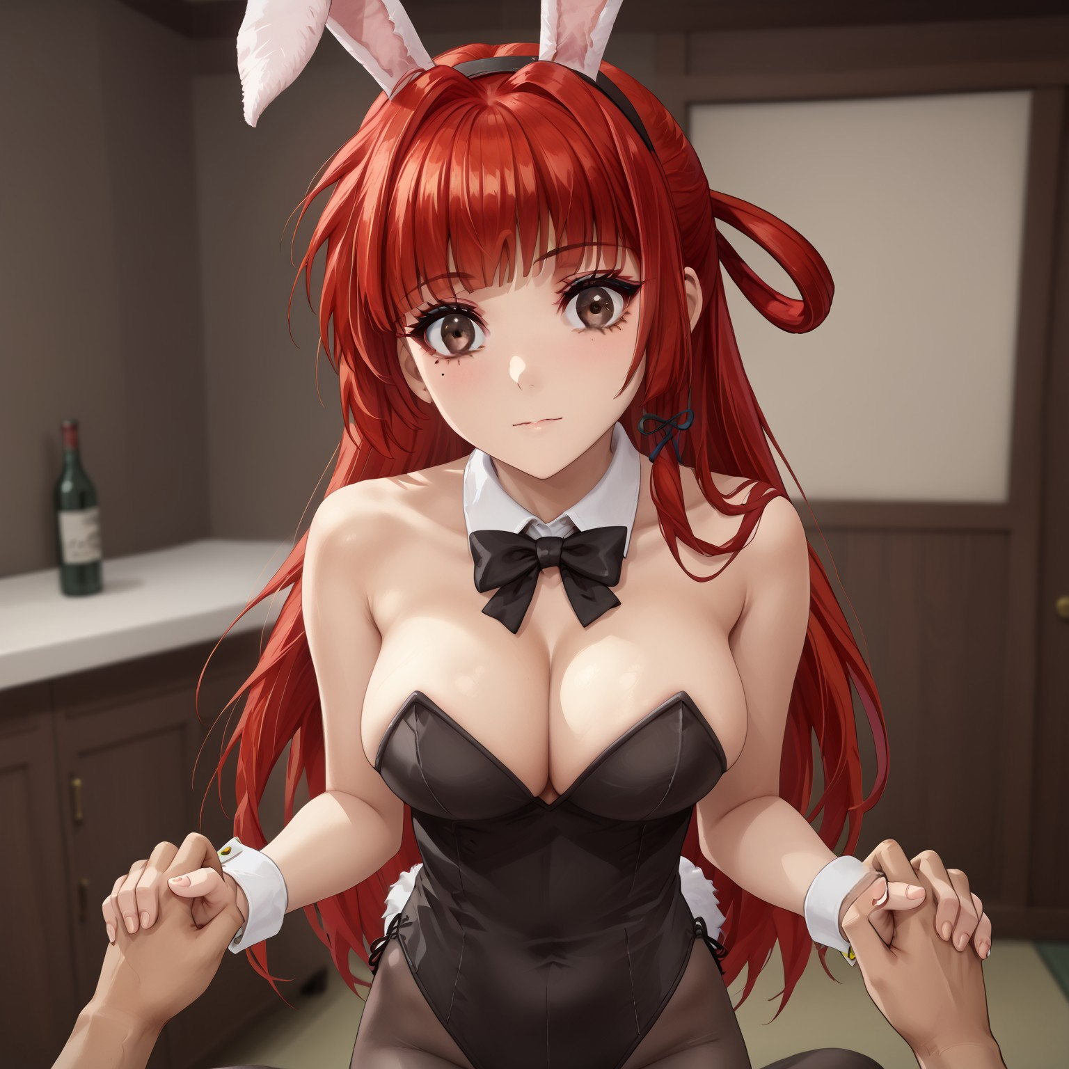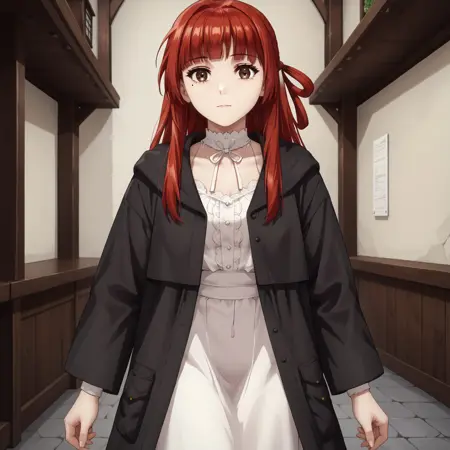 트리거 단어: 호소카와 하루카, 갈색 눈, 눈 아래 점, 빨간 머리, 긴 머리,