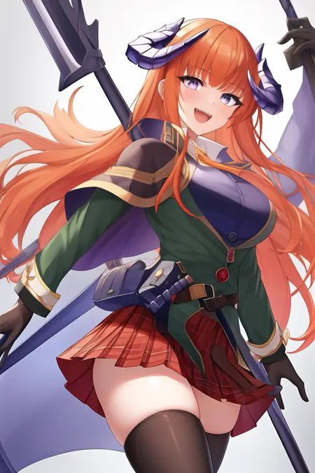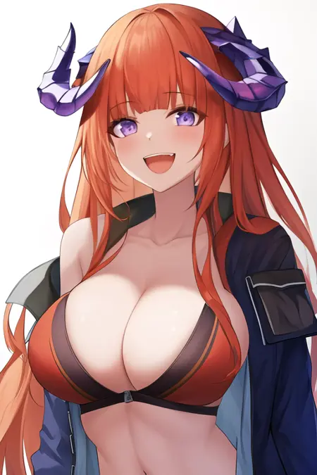 - The pruned character tags are orange hair, horns, long hair, very long hair, purple eyes, breasts, dragon horns, large breasts. You can add them into prompts when core features (e.g. hair color) of character is not so stable.
