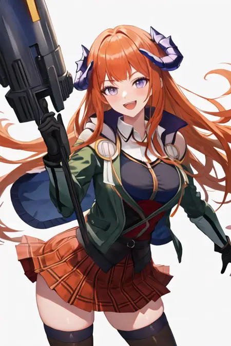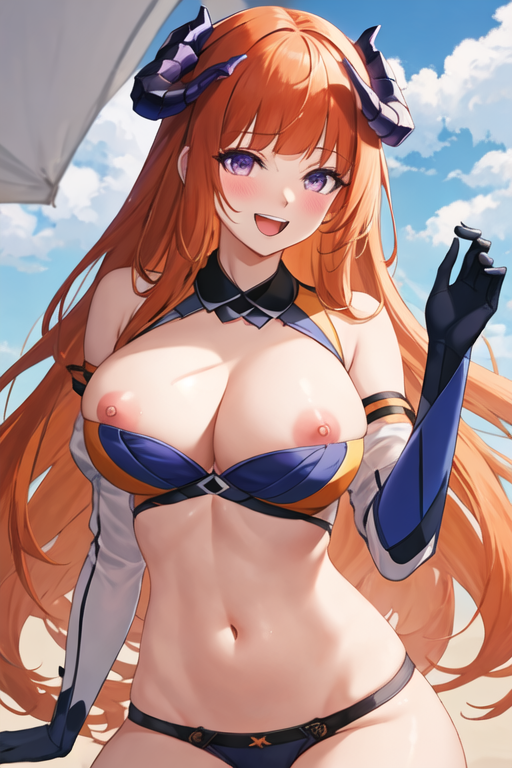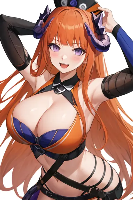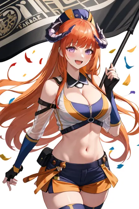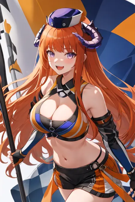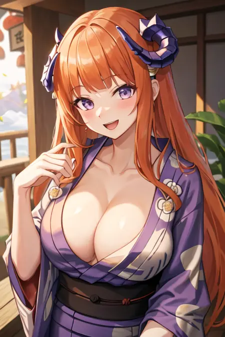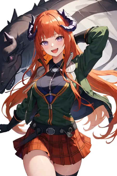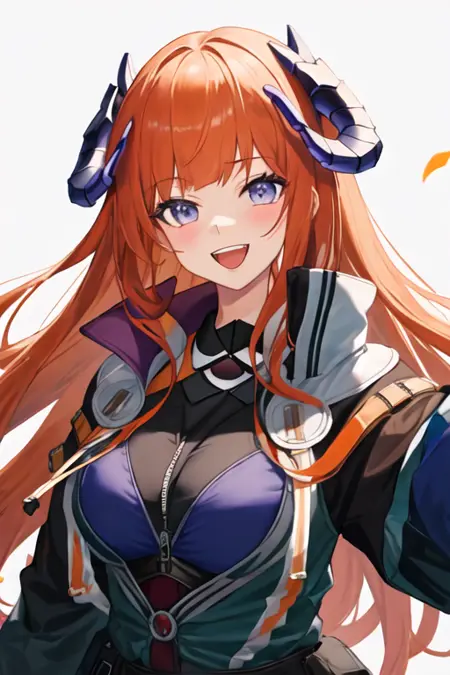 - The pruned character tags are orange hair, horns, long hair, very long hair, purple eyes, breasts, dragon horns, large breasts. You can add them into prompts when core features (e.g. hair color) of character is not so stable.