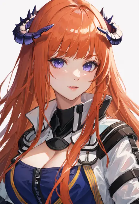 - The pruned character tags are orange hair, horns, long hair, very long hair, purple eyes, breasts, dragon horns, large breasts. You can add them into prompts when core features (e.g. hair color) of character is not so stable.