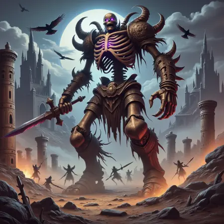 外观:骨骼战士通常被描绘为人类或类人骷髅,身披古老铠甲,手持各种武器,如剑、斧头或长矛。他们的骨骼可能散发出幽灵般的光芒,增强其超自然的气质。