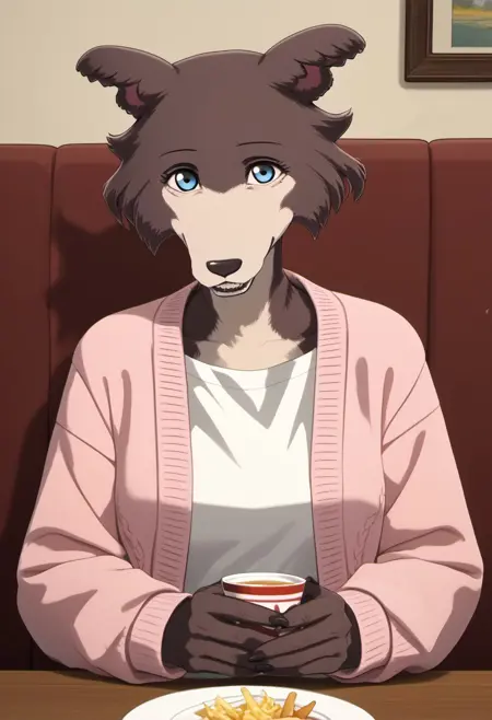 Juno, 1girl, mature female, female, anthro, wolf, animal ears, blue eyes, brown fur