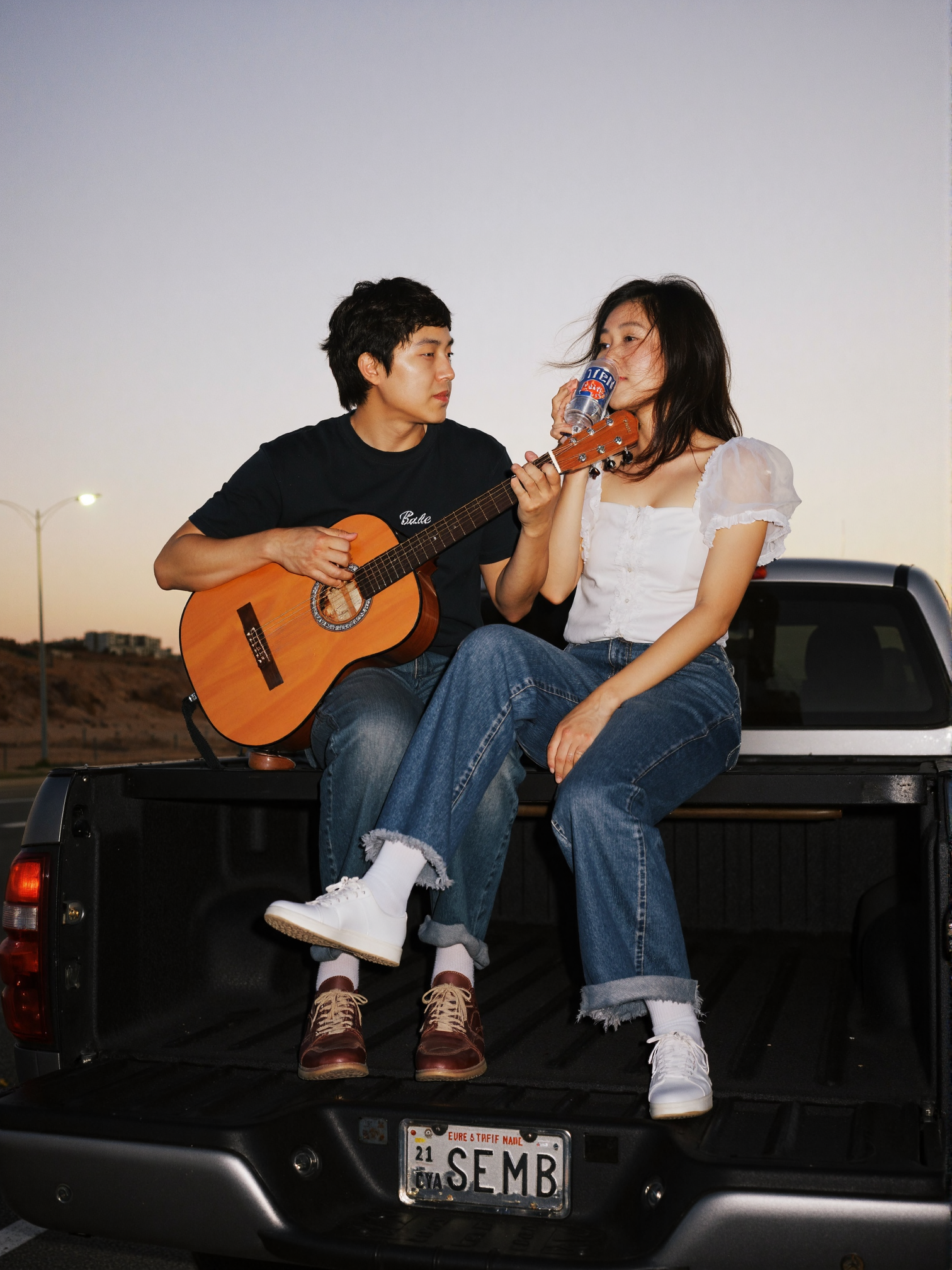 1. The photo has a vintage, film-like quality with a grainy texture.