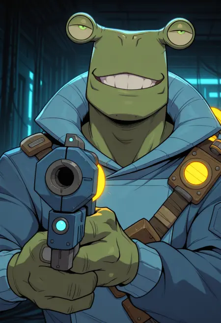《Griftlands》游戏中的可玩角色史密斯,一种形似青蛙的外星人,游戏中的种族名为Kra'deshi,喜欢饮酒。