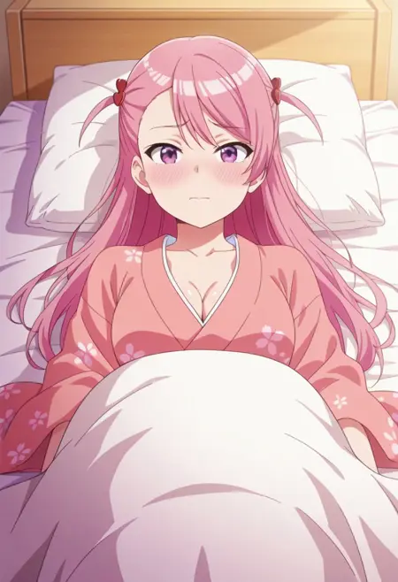 트리거 단어: sakuramori maho, 긴 머리, 분홍색 머리, 보라색 눈