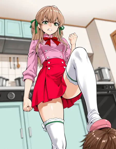触发词:azusagawa tsukino, 发带, (红色颈饰:0.8), 甜点师, 粉色衬衫, 裙子, (红色裙子:0.8), 过膝袜