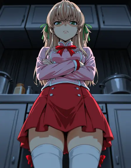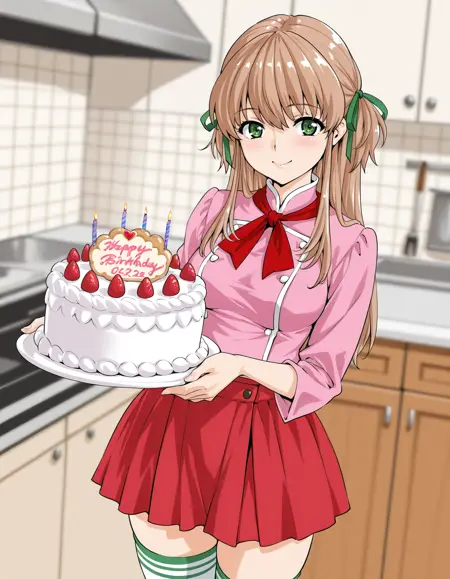 トリガー:azusagawa tsukino, ヘアリボン, (赤い首飾り:0.8), パティシエ, ピンクシャツ, スカート, (赤いスカート:0.8), ストッキング