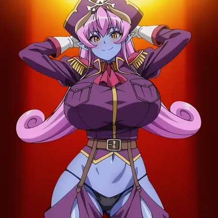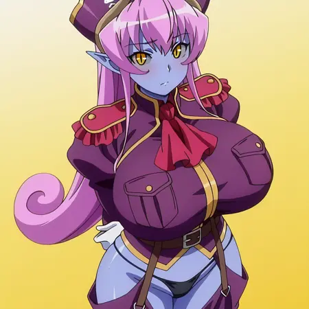 | Trained Words | Ew_Ephanatica, 1girl, solo, blue skin, colored skin, huge breasts, yellow eyes, slit pupils, grey sclera, colored sclera, pink hair, long hair, pointy ears, hornsCopied! pirate hat, white gloves, belt, pocket, ascot, epaulettes, purple military uniform, black panties, side-tie panties, underwear, hip vent, high heel boots, black footwearCopied! anime screencap, anime coloringCopied! Ew_Efa_Granada, 1girl, solo, dark skin, dark-skinned female, closed eyes, huge breasts, long hair, purple hair, ponytail, sidelocks, hair ribbonCopied! white ascot, tight jacket, cleavage lace, black lace trim, lingerie, pencil skirt, side slit, fishnets, white fishnet thighhighs, pink high heelsCopied! |