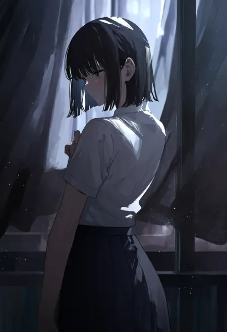 OTZZK, 1girl, solo, ringed eyes, looking at viewer,