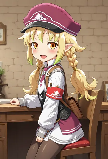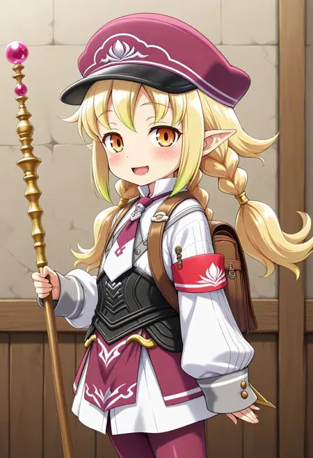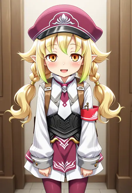 RF5_Livia_v1_1, 금발, 긴 머리, 다색 머리, 더블 브레이드, 낮은 더블 테일, 주황색 눈, 눈 사이의 머리, 뾰족한 귀, 옆머리, 평평한 가슴