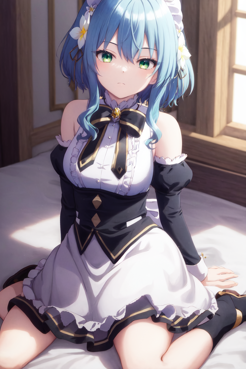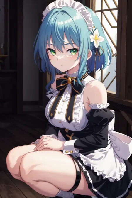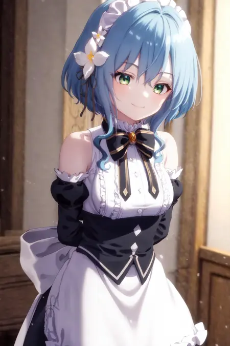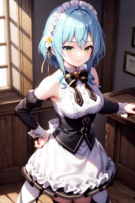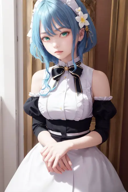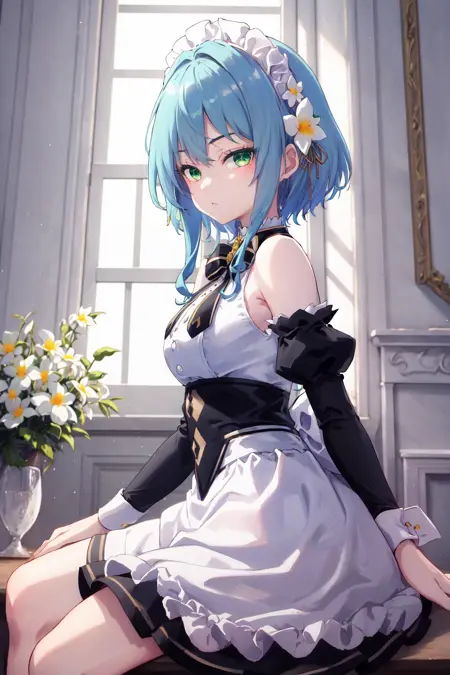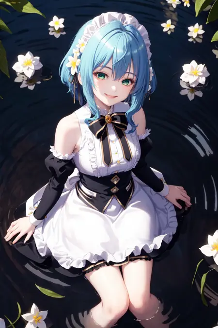 캐릭터 트리거(no_outfit): 1girl 파란 머리 초록 눈 머리 리본 머리 꽃(no_outfit 버전은 "파란 머리"를 추가해야 합니다😢)