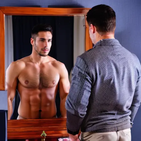 现实中的衣服,镜中的裸体。这会导致一些滑稽的结果,但效果还不错!它经常忽略真实的反射。请描述你希望看到的衣服,以生成这种效果。
