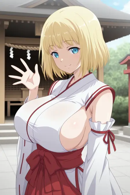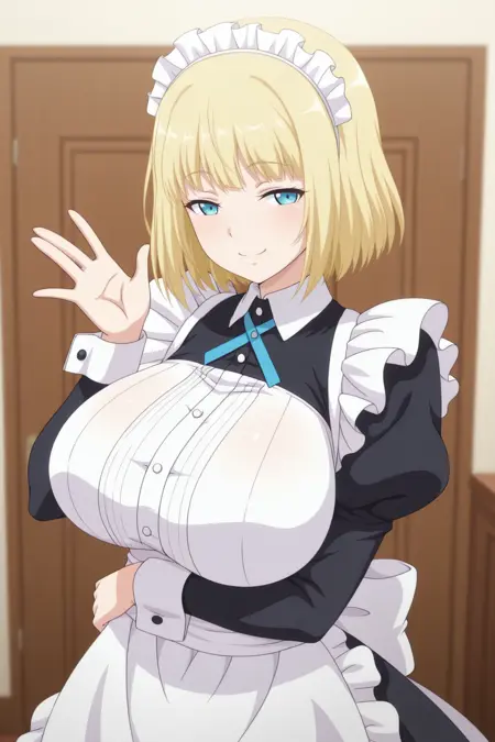 外見: 金髪、短髪、青い目、大きな胸(または巨大な胸)