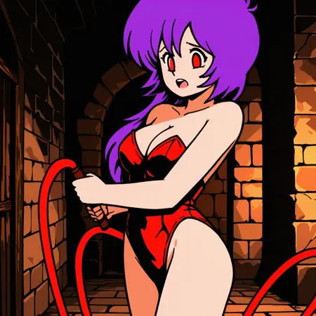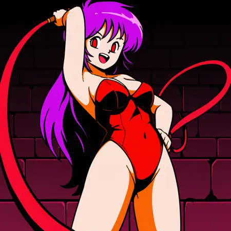 当LoRA强度高于0.7时,即使不特别指定,除鞭子外都会还原原作服装。(鞭子无法良好绘制)