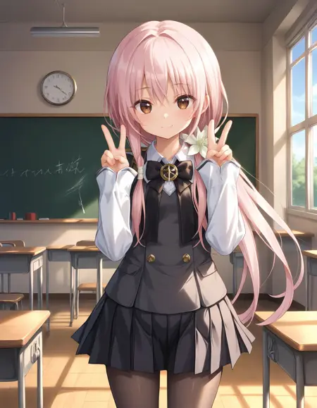 | Trained Words | kur0, very long hair, pastel pink hair, hair accessary, flower accessary, lily \(flower\), brown eyes, small breasts, {asymmetry hairstyle, low ponytail, ponytail over shoulder, sidelock, sidelock white ribbon tied| sidelocks, twin braids}Copied! outfit01, Chrono Clock uniform, shirt, white shirt, long sleeves, sleeves past wrists, sleeves past fingers, bowtie, black bowtie, vest, black vest, close vest, skirt, pleated skirt, black skirt, pantyhose, black pantyhose,Copied! outfit02, outfit02, jacket, black hooded jacket, cat hood, fake animal ears, hood up, zipper, open jacket, long sleeves, sleeves past wrists, sleeves past fingers, collarbone, collar, black collar with bell, shirt, yellow shirt, shorts, yellow shorts, baggy shorts,Copied! Chronos, hair accessary, clock face accessary, Japanese clothe, kimono, long kimono, purple kimono, wide sleeves kimono, long sleeves kimono, patterned lining, golden gear patterned lining, collarbone, off shoulder, bare shoulder, obi, gear around obi, golden gear, obi cord, long red cord, bare feet, no pantie,Copied! |
