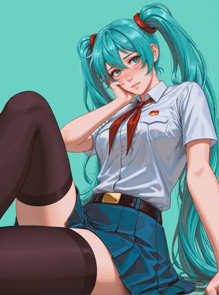 推奨重み: 0.75-1。基本的な服装のトリガー: 白いシャツ、赤いネクチーフ、青いスカート、ベルト、シンハイズ、黒い靴