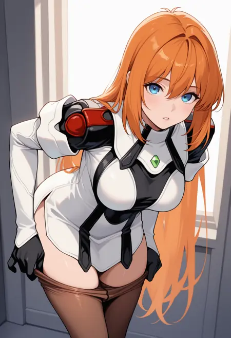 트리거 + 외모: elh4ym, 긴 헤어, 주황색 머리, 눈 사이의 머리카락, 파란 눈