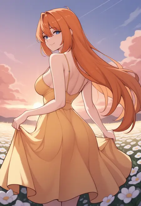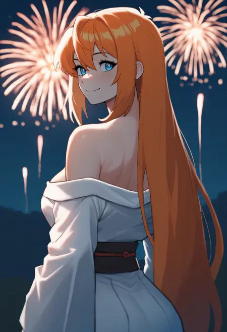 触发词 + 外观: elh4ym, 长发, 橙色头发, 头发遮住眼睛, 蓝色眼睛