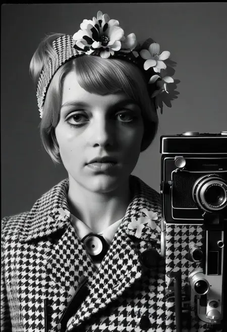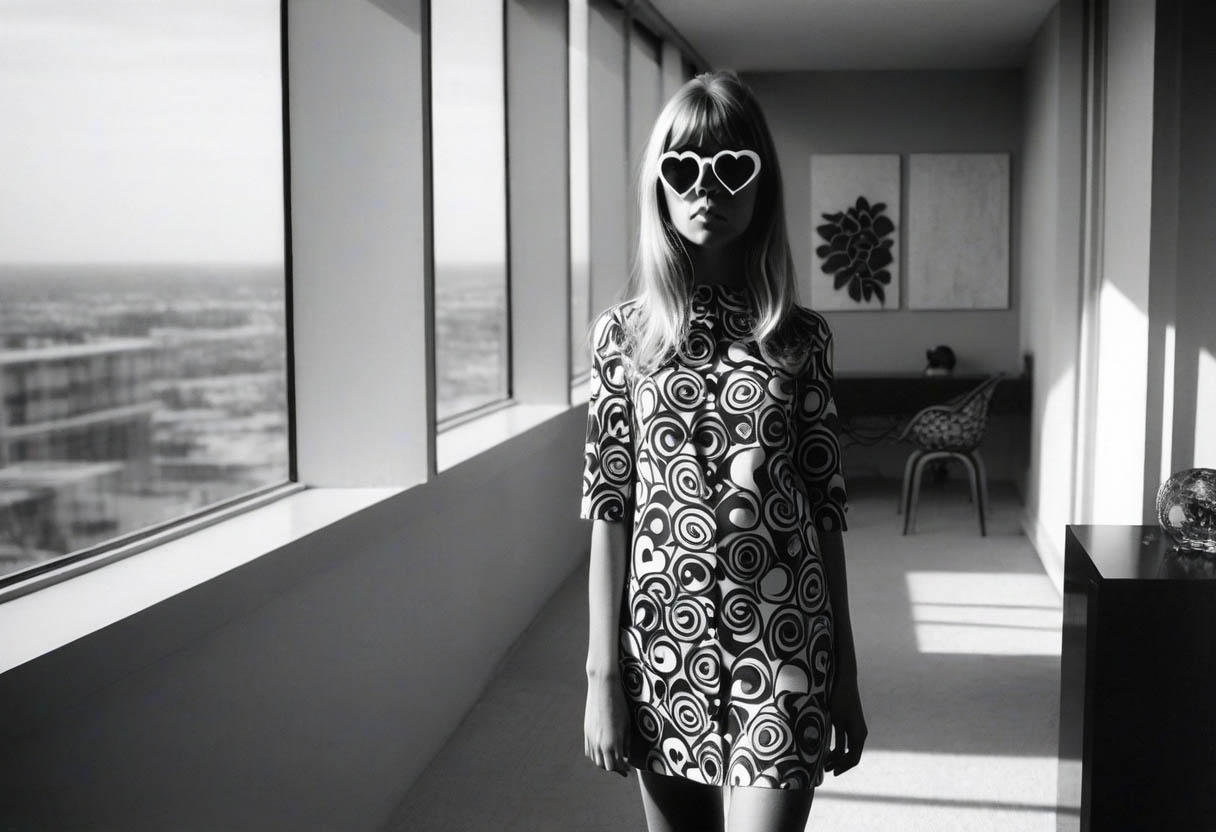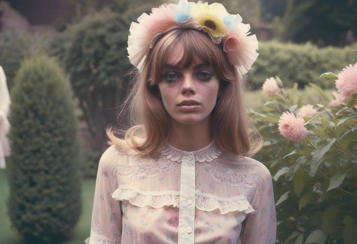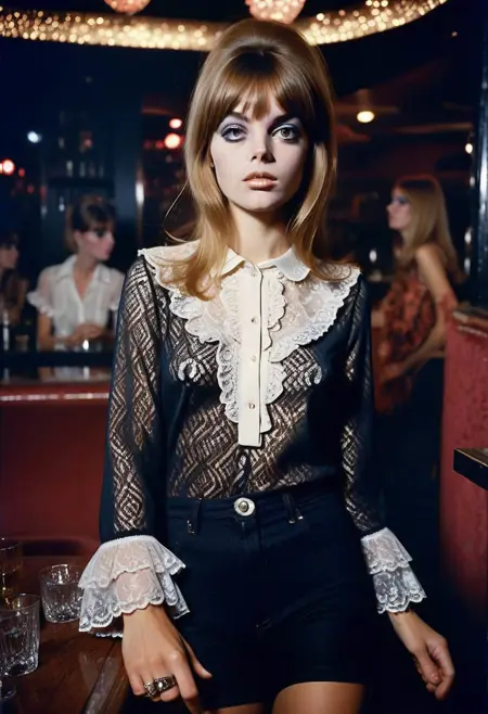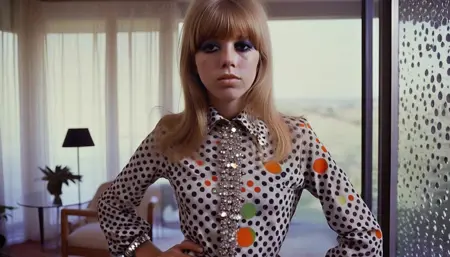 このモデルは、フランス・ポップのクラシックな「yeh-yeh(またはye-ye)」ガール(フランソワーズ・アルディなど)と、1960年代の英国の「it」ガール(トゥイッギー、ジャン・シュリムプトン、ジュリー・クリスティなど)の外観を再現します。これらはメアリー・クワントなどのファッションデザイナーによって着こなされ、デイビッド・ベイリーなど(主に)男性写真家によって撮影されました。また、このモデルは男性キャラクターにもよく適用され、エインドロギナスな雰囲気を与えます——デビッド・ボウイや1970年代の数多くのポップスターを思い浮かべてください。