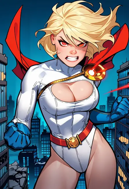 DC漫画中Power Girl的LoRA。数据集使用了来自《Power Girl》(2009年)、《JSA: Classified》(2005年)以及粉丝艺术的图片。在我看来,Amanda Conner是史上最伟大的Power Girl画师。我建议使用此西方漫画LoRA或漫画艺术风格LoRA以获得更接近漫画书的效果。