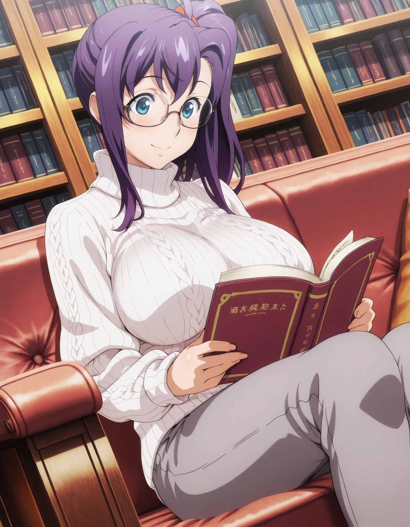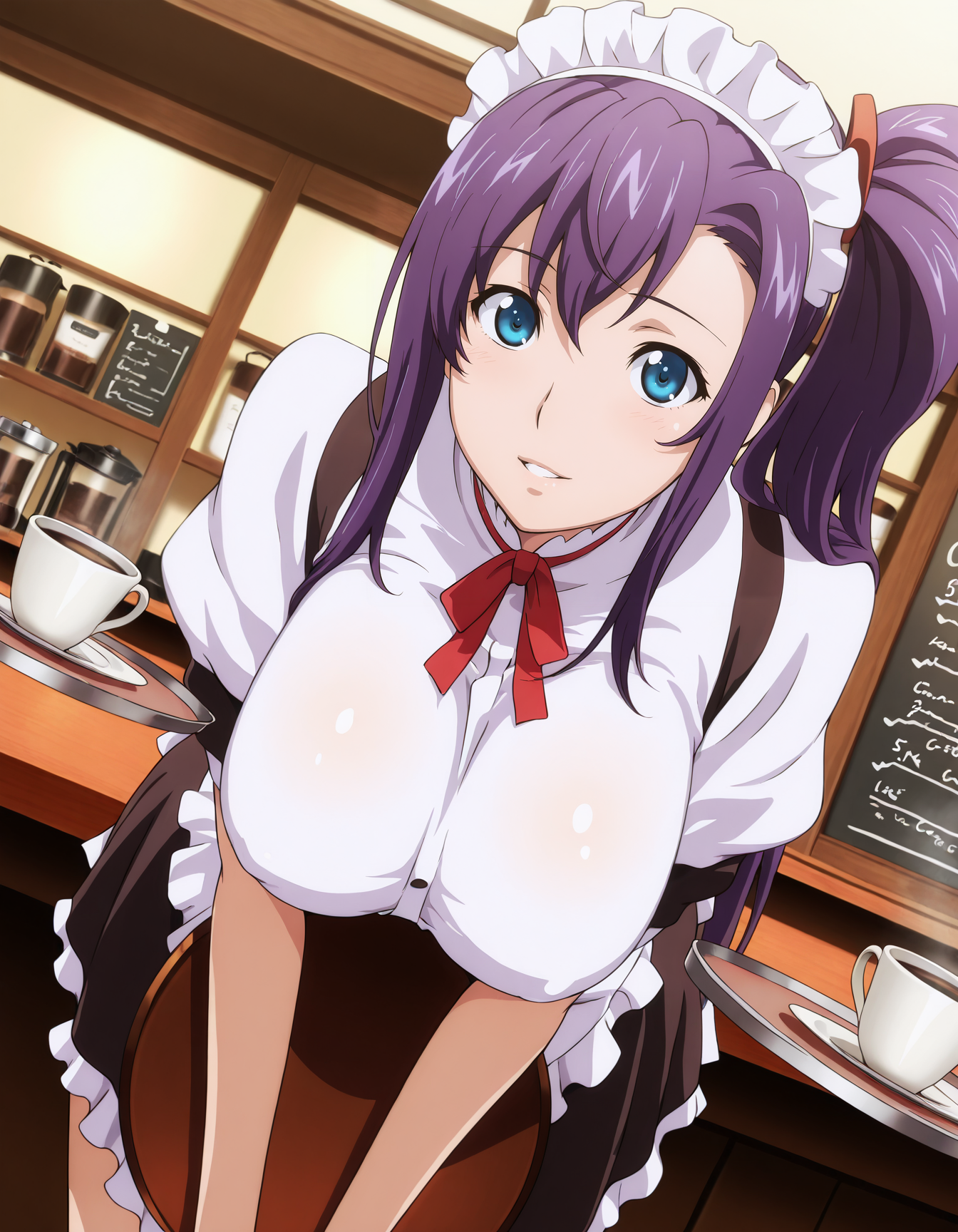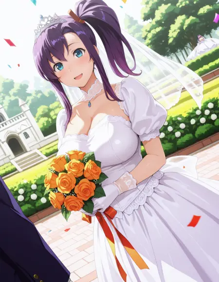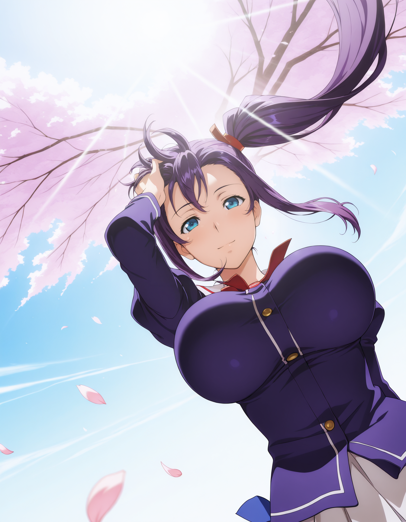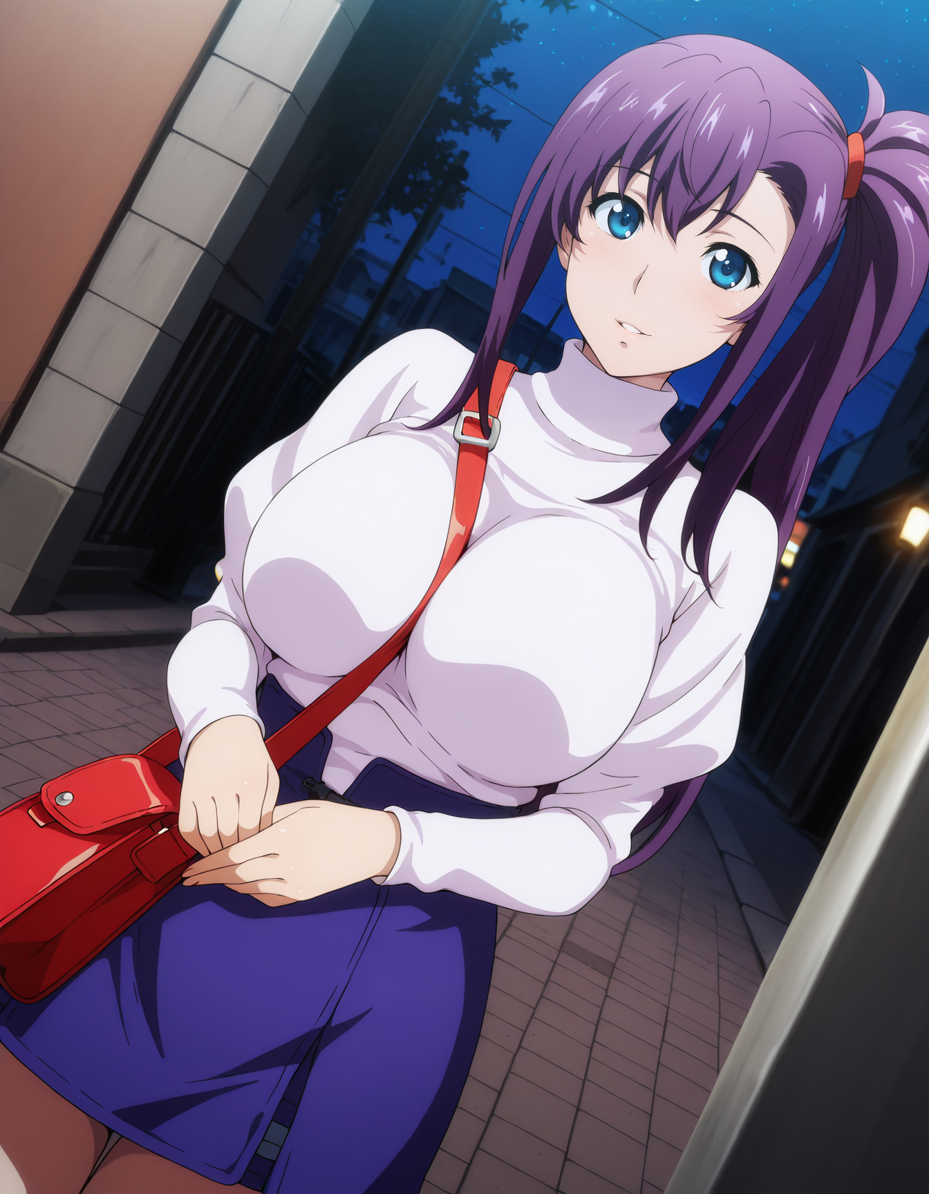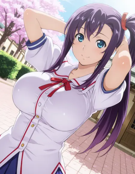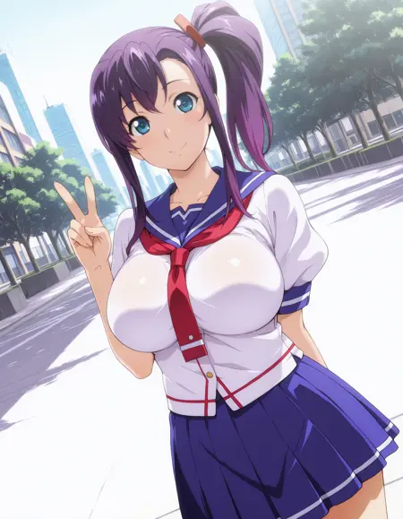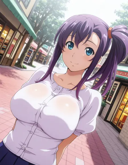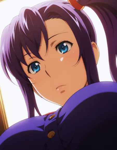 harukoamaya, blue eyes, purple hair, side ponytail