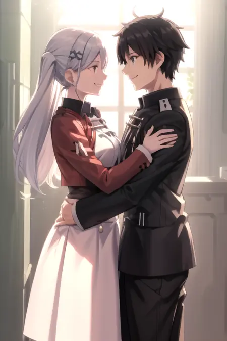 RitsukaRiesbyfe, a man and a woman, hetero, standing, smile, cowboy shot