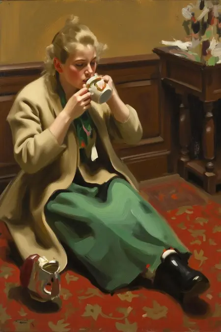 绘画性写实主义:其作品以自由而自信的笔触著称,看似随性,却精准捕捉形态与光线。