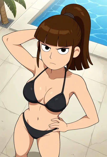 1girl, solo, NatureKate_C, 밝은 피부, 검은 눈, 진한 갈색 머리카락, 길이 머리결 패션, 곧은 앞머리
