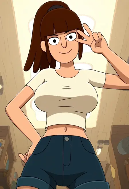 1girl, solo, NatureKate_C, 白皙皮肤,黑色眼睛,深棕色头发,发型为马尾辫,齐刘海