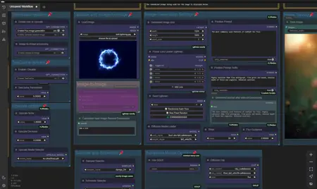 I've published one other Flux workflow that has all the Controlnet options, but I found that I almost never used Controlnet since it's too slow. I also had another workspace dedicated to upscaling images, and I sometimes like to use image-to-image guidance as well, so I decided to work up a new workflow that put all those features in one compact package.