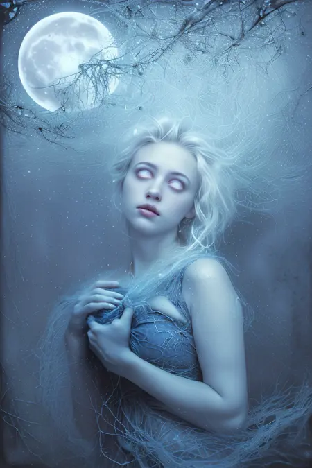 I couldn't prompt white eyes — you know, like without any iris or pupil? No matter how hard I tried, I couldn't do it. I just wanted to make a bunch of spooky photos! So I made this LoRA.