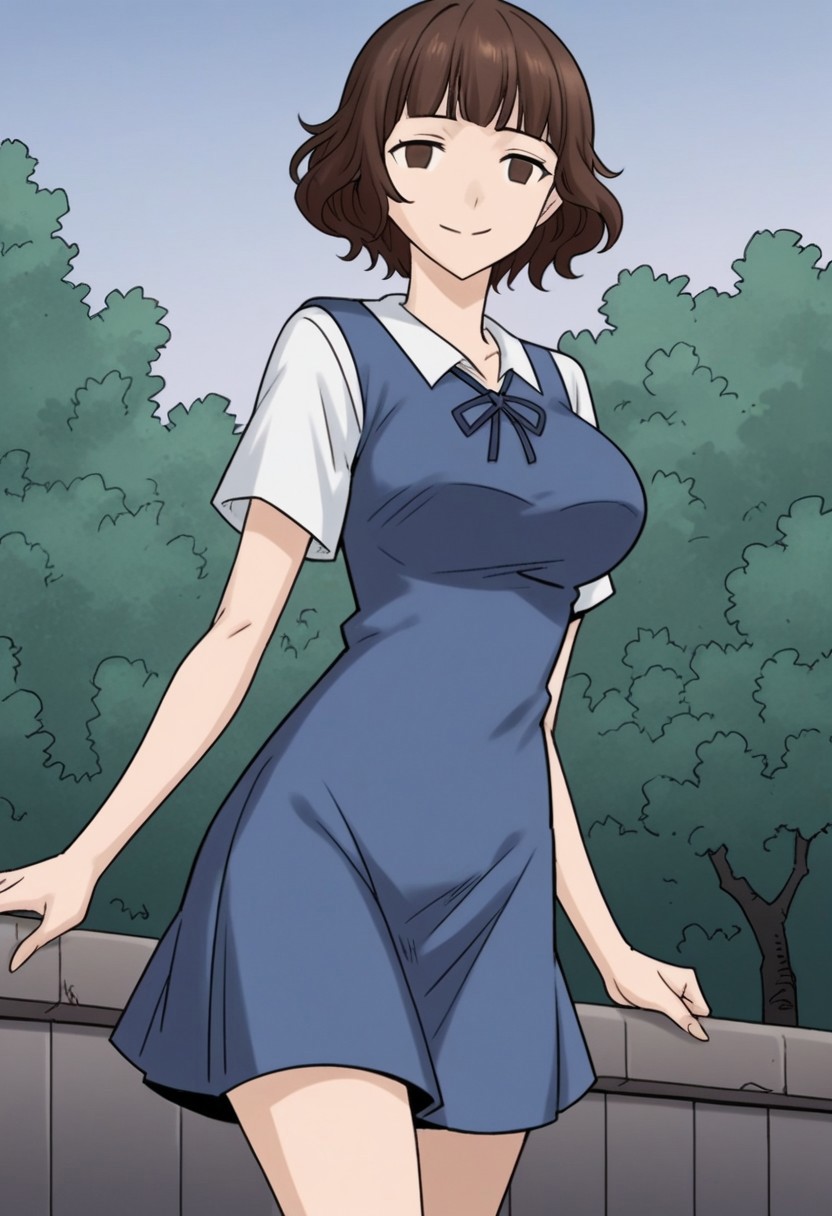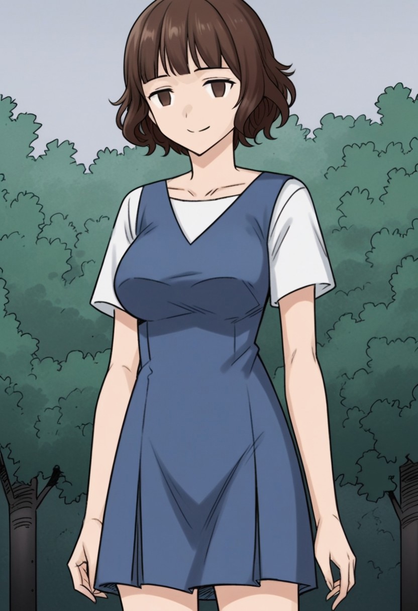 기본: 신의, 단발, 갈색 머리, 갈색 눈, 앞머리, 큰 가슴,