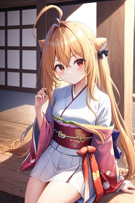 Character trigger: 1girl hair bun ahoge hair bow