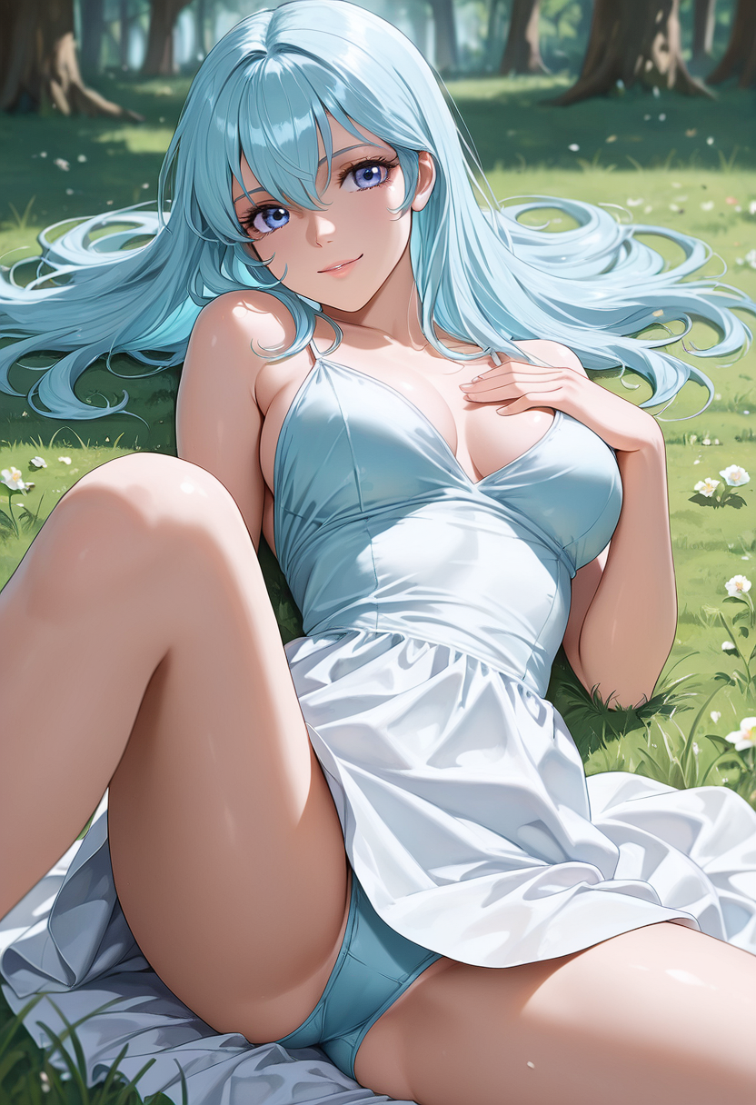 (long_hair, blue_eyes, light_blue_hair, aqua_hair, eyelashes, hair_between_eyes:1.2),