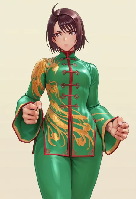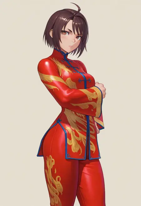 kazamaakira, 1girl, solo, chinese clothes, pants, ahoge